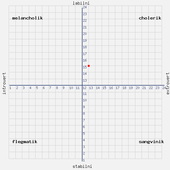 Počet bodů: [13,15] Převládající povaha: cholerik