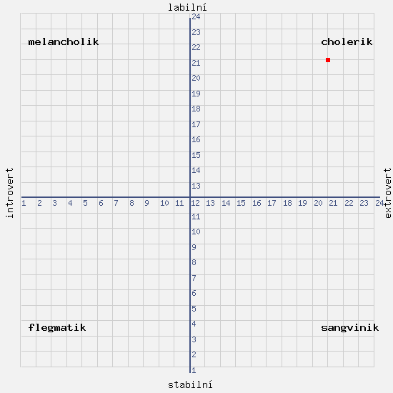 Počet bodů: [21,21] Převládající povaha: cholerik